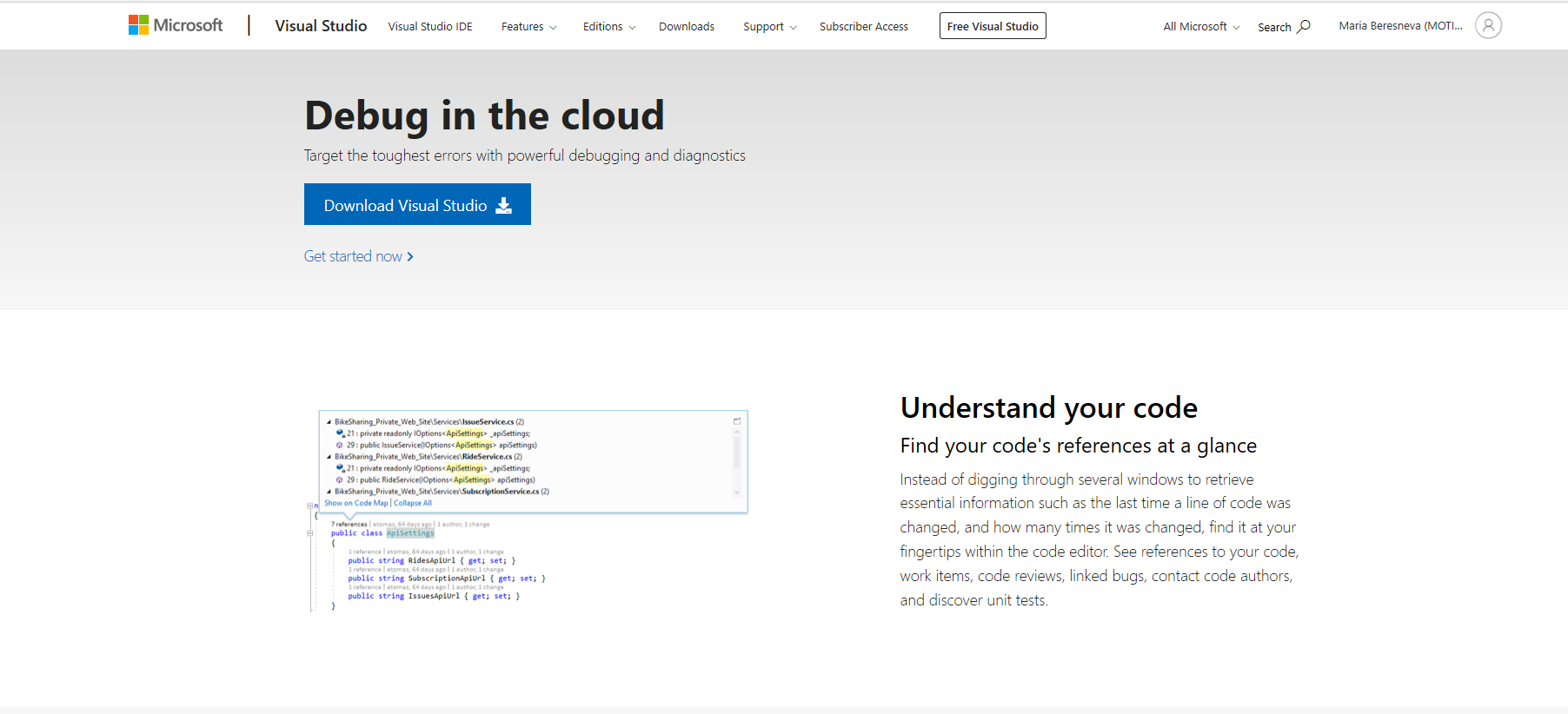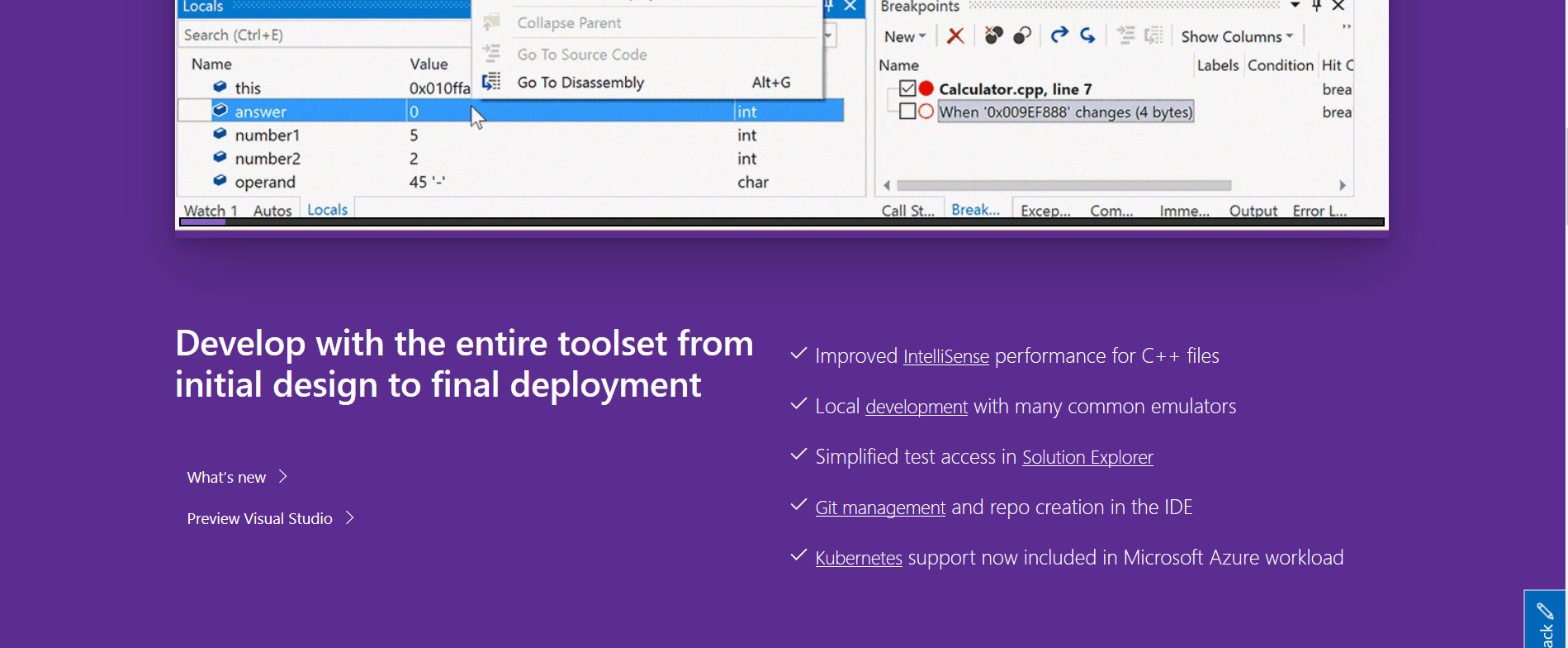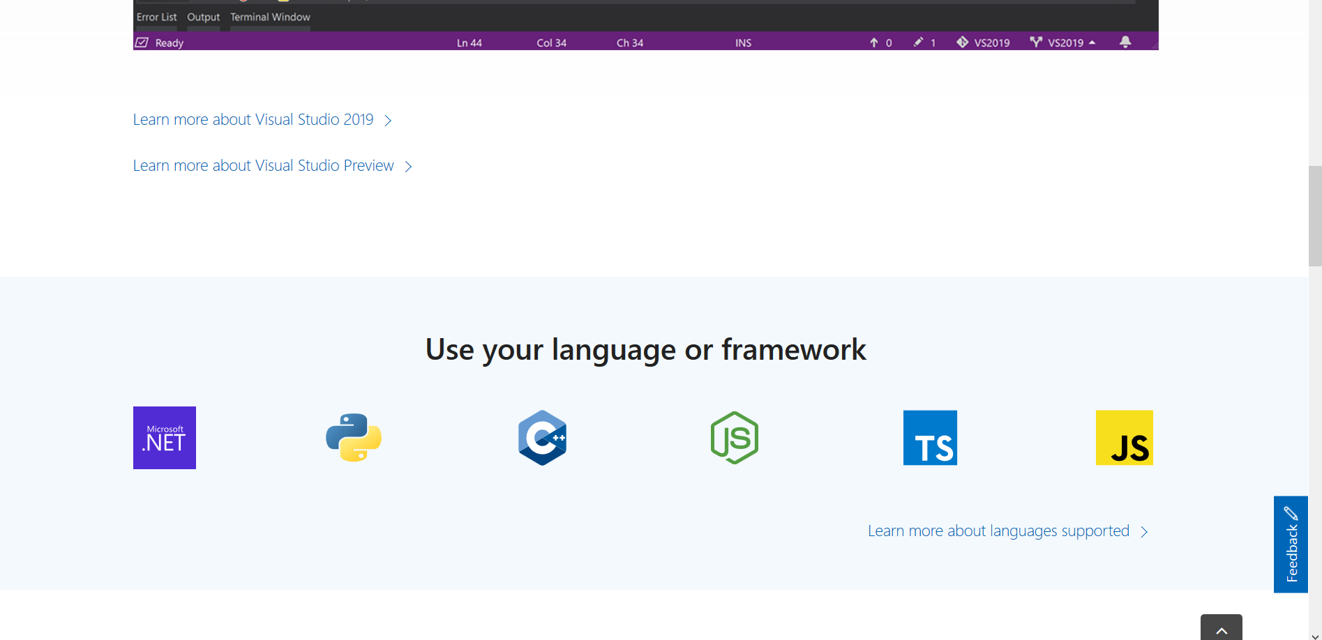 Write copy for various Visual Studio website pages, describing features and benefits and marketing Visual Studio to new and existing users alike.
